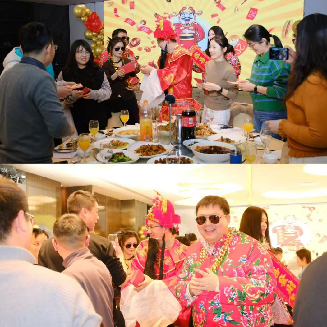 最后,公司CEO潘其霖化身“财神”为全体员工派发新年红包,寓意新的一年福运相伴、业绩长虹。年会美酒佳肴相伴,欢声笑语不断,最后全体人员合影留念,为本次年会画上圆满句号。